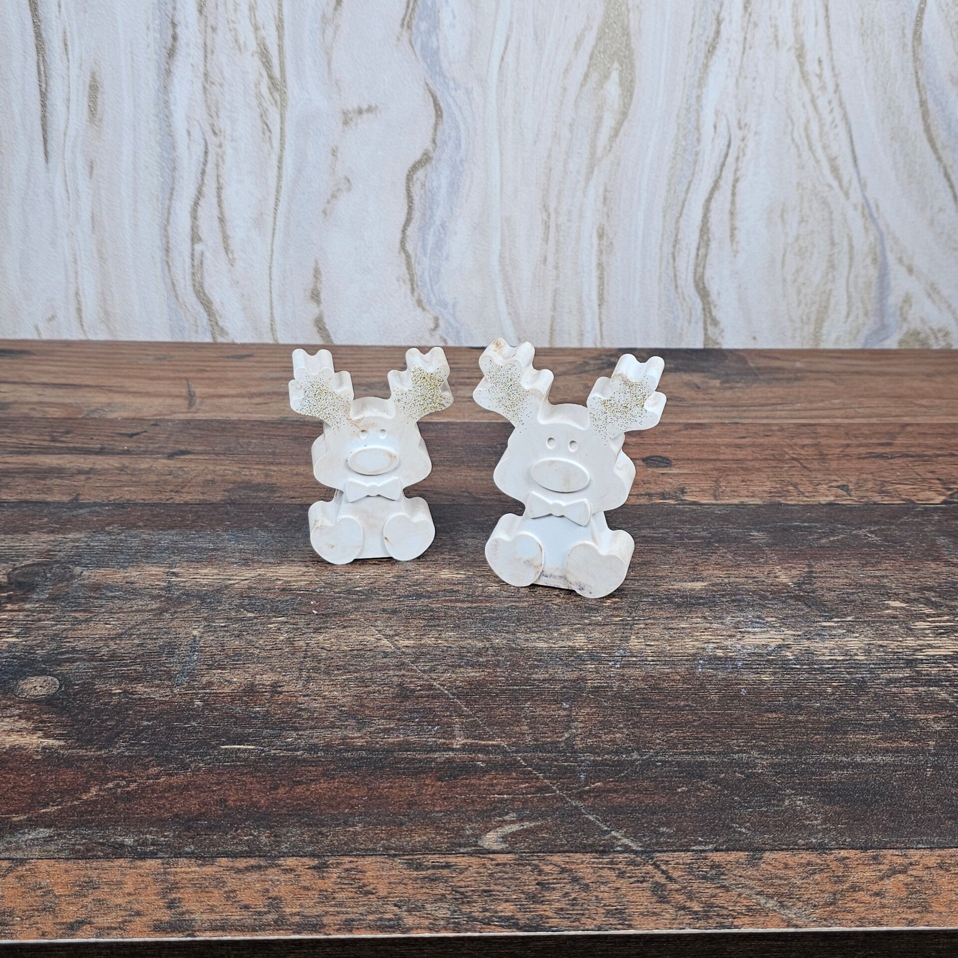 Zwei kleine Elchbrüder, schlicht und doch voller Charme. Mit ihren feinen Fliegen und dem ruhigen, treuen Blick bringen sie eine sanfte winterliche Stimmung in jedes Zuhause. Handgegossen aus Gießmasse und mit viel Liebe gestaltet – perfekt als dekoratives Duo auf dem Regal, dem Fensterbrett oder als liebevolles Geschenk.