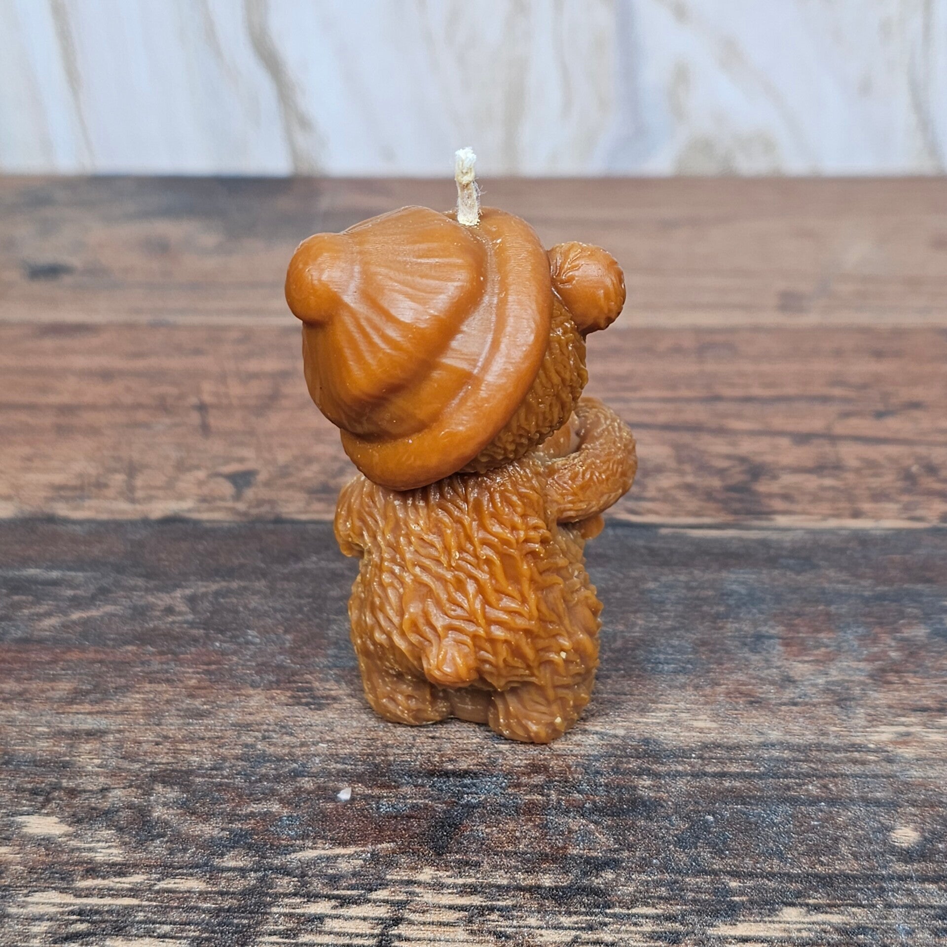 Diese zauberhafte Kerze zeigt einen süßen Bären, der sein Kuscheltier fest an sich drückt und dabei eine niedliche Mütze trägt – ein Symbol für Geborgenheit, Wärme und kindliche Freude.
